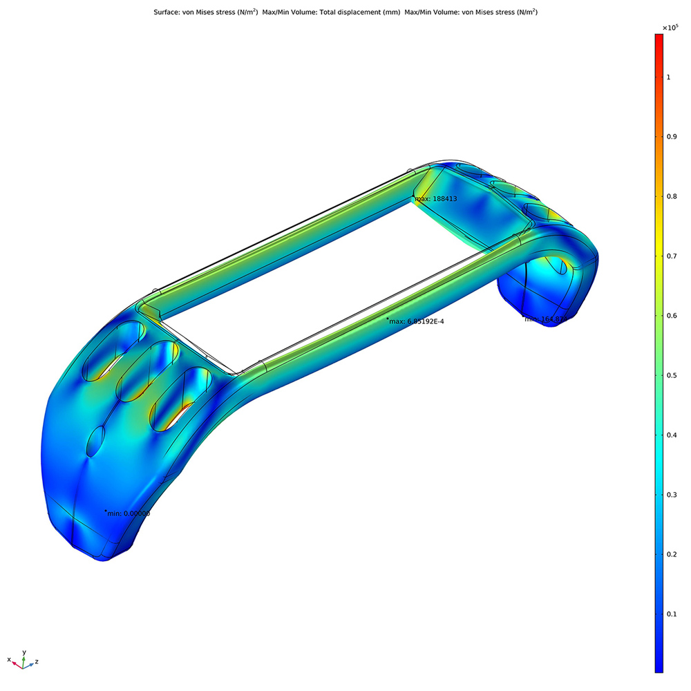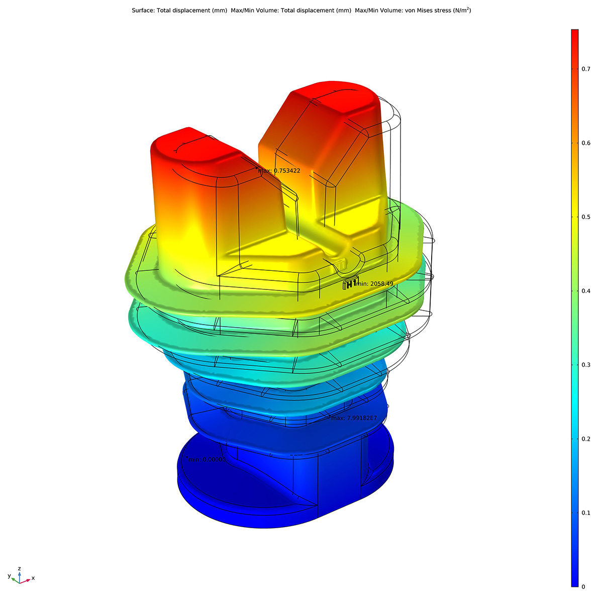A third example is structural analysis. The ABB team computes the stress level of the IT to optimize the geometry (Figure 3). They also look at the stress displacement levels of the devices and components in order to optimize them before 3D printing of prototypes for testing — or, more serious yet, mass production. Modeling is not only helpful for seeing the performance of the device in advance but also for determining its structural integrity.